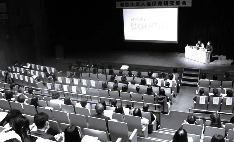 【和歌山】 第2回和歌山県人権保育研究集会が2月11日、和歌山市内の県民文化会館でひらかれ、保育、教育関係者、自治体職員、和歌山県連はじめ運動団体などからも多くの参加があった。