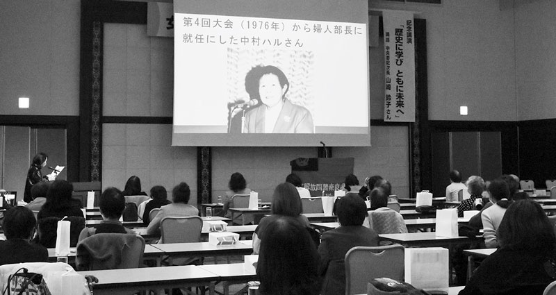 【奈良支局】 結成50年を迎えた県連女性部は、昨年12月11日に橿原市内のホテルで記念集会をひらき、女性部員や元役員など70人が参加した。「県連女性部50年のあゆみ」と題する、これまでの女性部の活動などをまとめた映像を上映、歴史をふり返った。また、山﨑中央書記次長(前中央女性運動部長)が「歴史に学び ともに未来へ」をテーマに記念講演をおこなった。サプライズゲストとして岸田章子・元中央女性運動部長が電話であいさつし、「多くの仲間と支え合い頑張って」とエールを送った。
